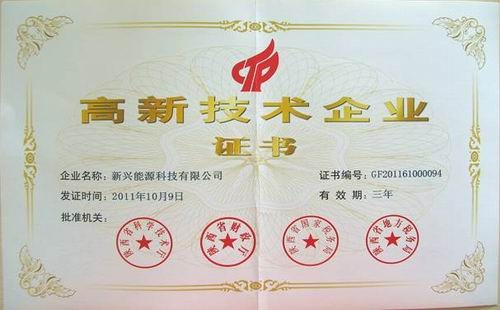 新兴能源科技有限公司再次荣获“高新技术企业”称号(图)-新兴能源科技有限公司